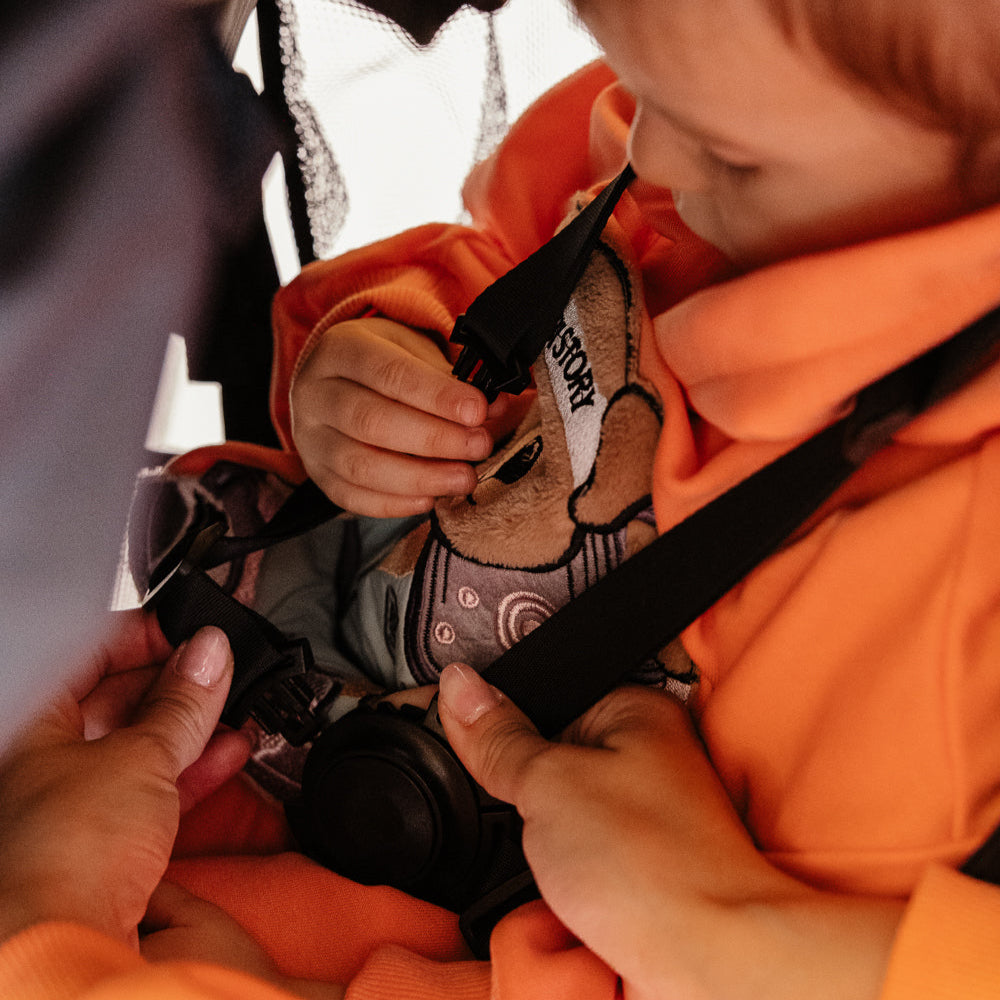Bij MAZELAKI staat de veiligheid van uw kind voorop. Daarom is elke nieuwe hangmat uitgerust met een moderne 5-puntsgordel, die zorgt voor een stabiele en veilige houding van uw kleintje tijdens wandelingen.